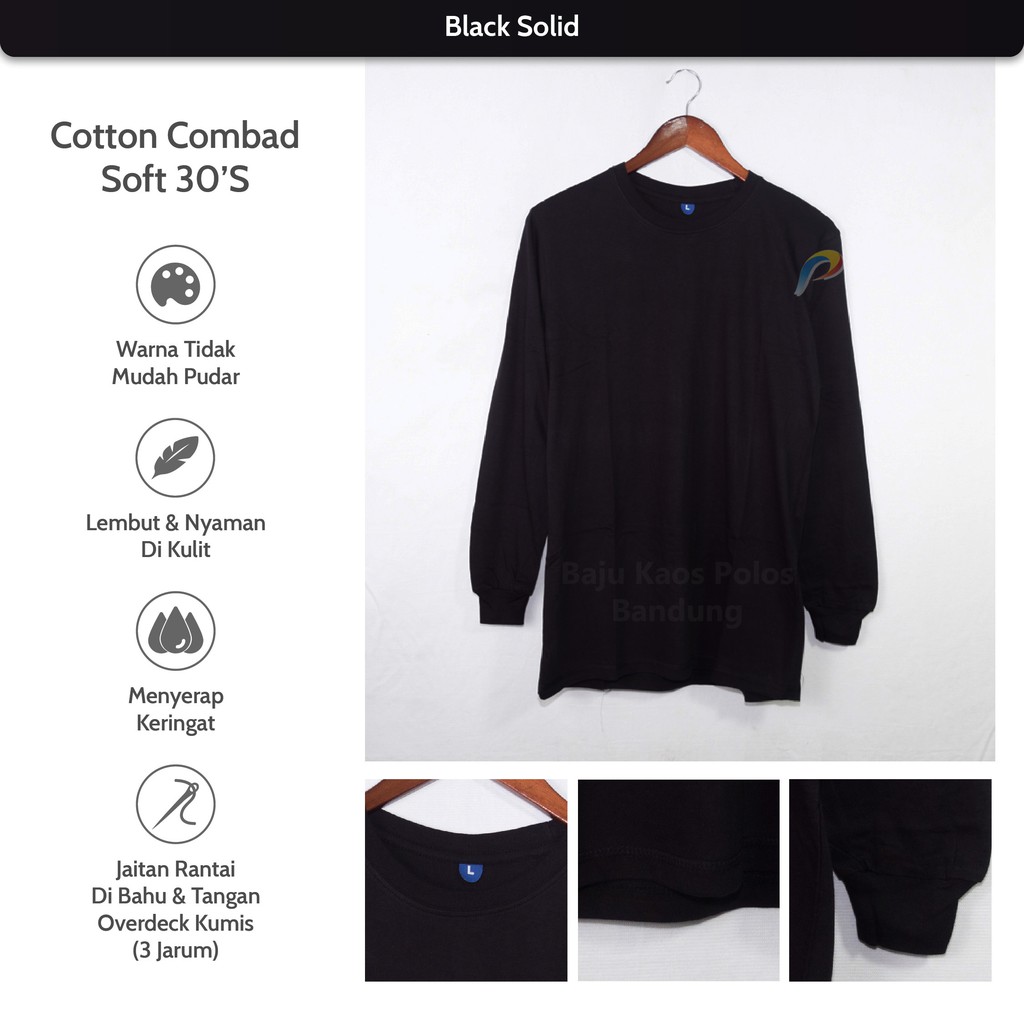 KAOS POLOS LENGAN PANJANG BLACK SOLID | KAOS DISTRO 100% COTTON COMBED 30S REAKTIF | PRIA / WANITA | Shopee Indonesia