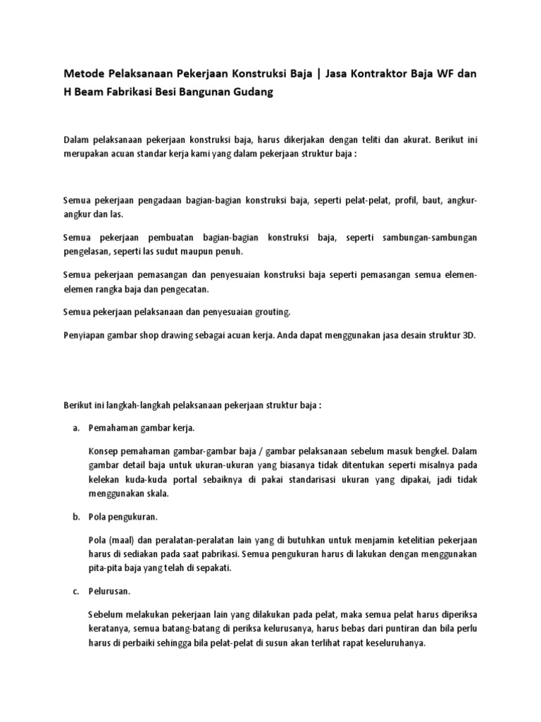 Metode Pelaksanaan Pekerjaan Konstruksi Baja