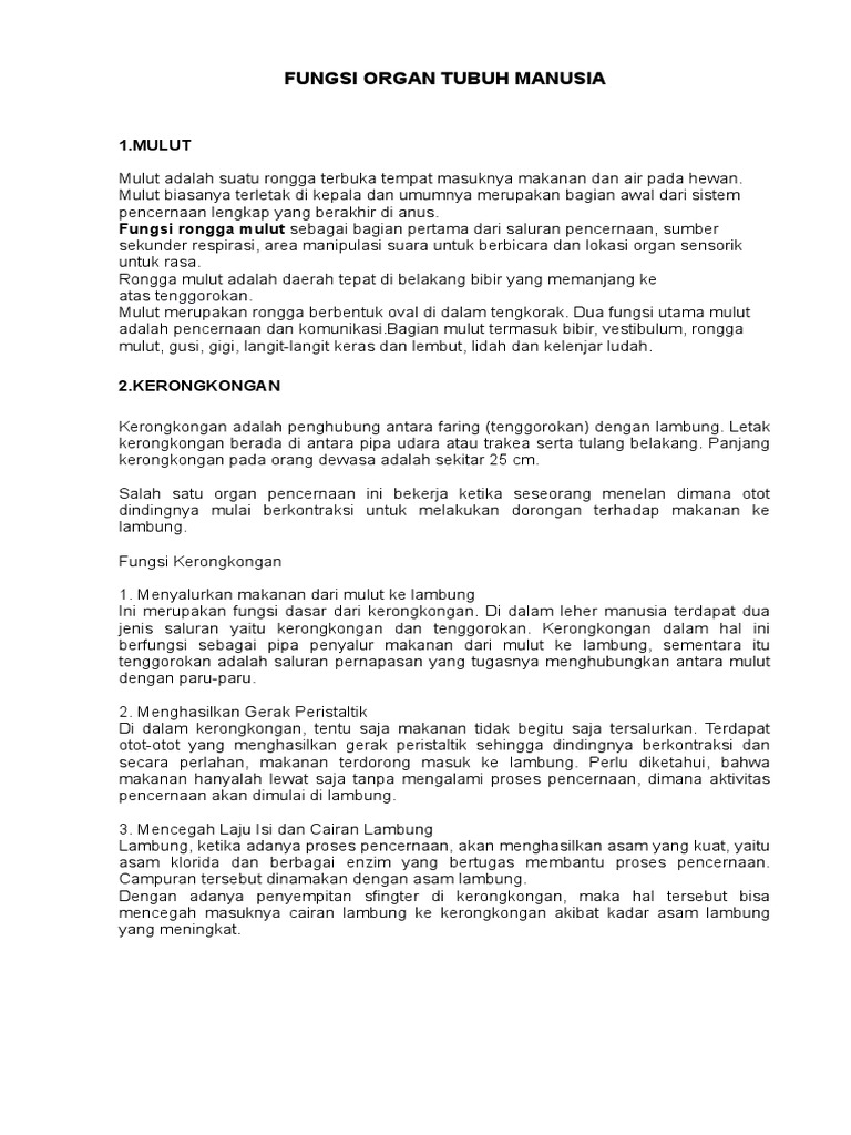 Fungsi Organ Tubuh Manusia