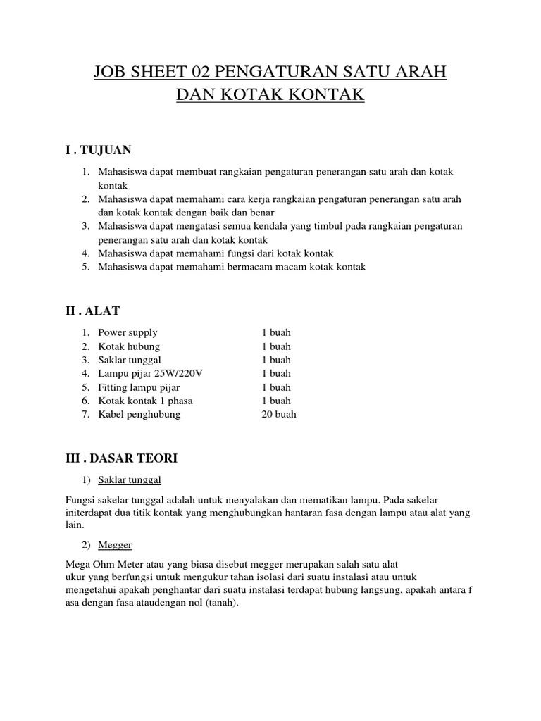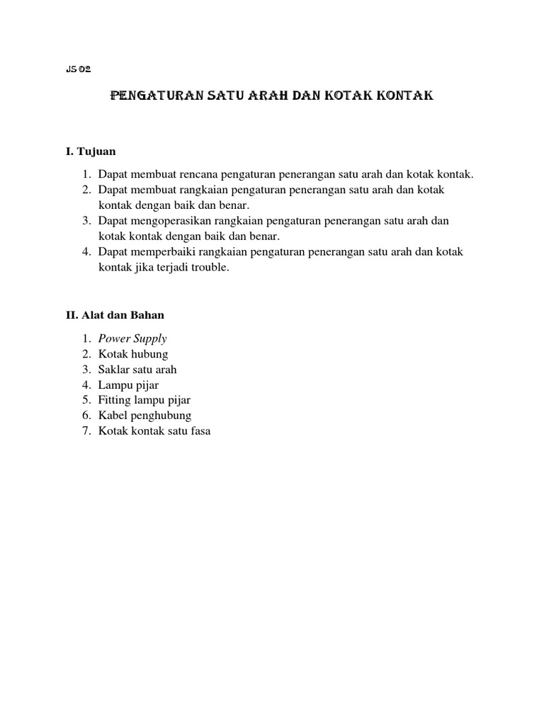 JOB SHEET 02 PENGATURAN SATU ARAH DAN KOTAK KONTAK