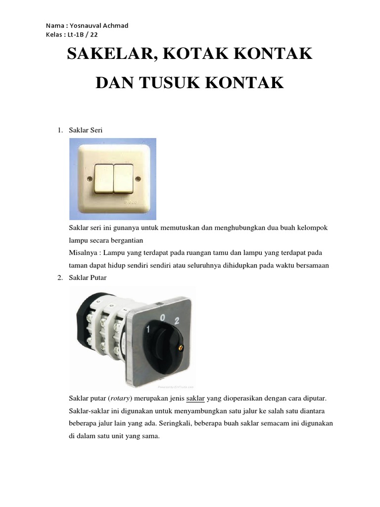 Tugas Saklar , Kotak Kontak,