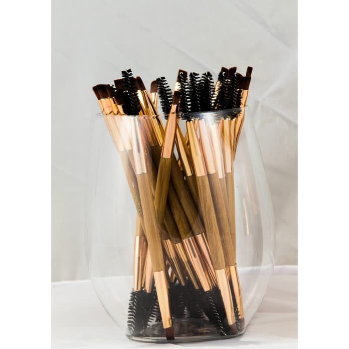 Sikat Duo Brow Makeup Sikat Pegangan Kayu Double Sided Alis Datar Miring Kuas Bulu Mata Alat Kosmetik|Mata Aplikator| - AliExpress
