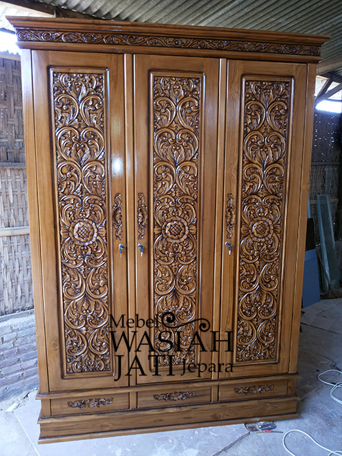Jual wardrobe lemari pakaian pintu 3 ukir cinta jati jepara | KASKUS