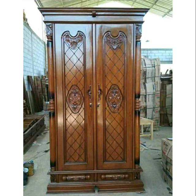 Jual Lemari Pakaian Jati Wardrobe Pintu 2 Original Kayu Jati Jepara Classic - Kab. Jepara - sekarjatijaya | Tokopedia