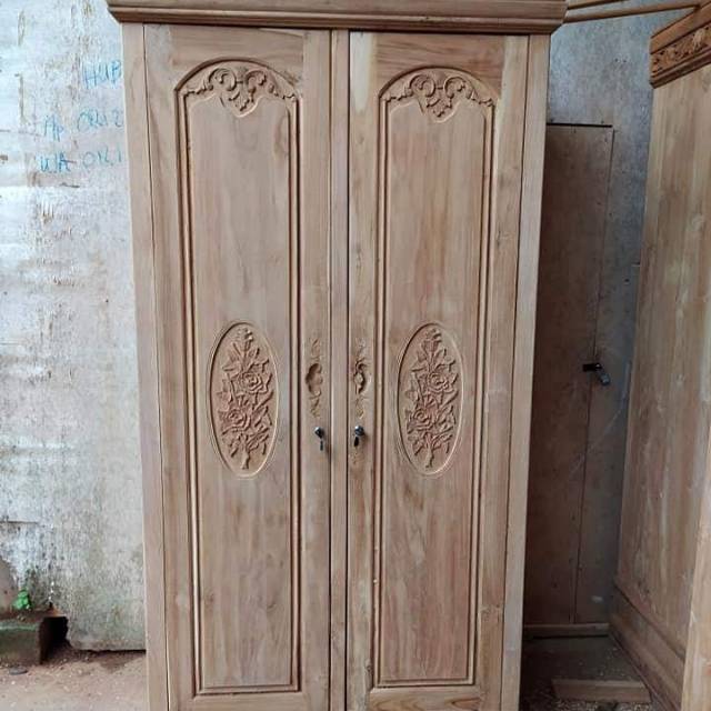 Almari pakaian atau lemari baju ukir mawar 2 pintu jati furniture jepara | Lazada Indonesia