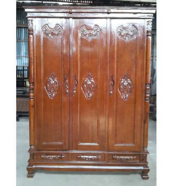 Lemari pakaian 3 pintu pluruh dan rahwana jati jepara Grade A kaki kambing KNOCKDOWN | Shopee Indonesia