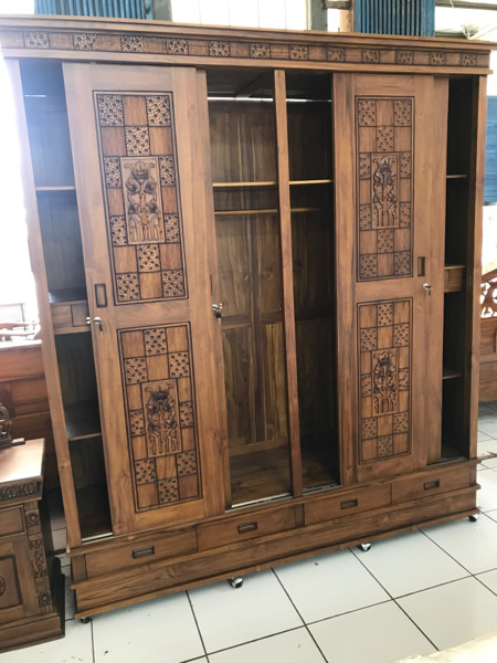 Jual Lemari pakaian jati mentahan pintu 4 almari motif gebyok ukir Jepara - Kab. Jepara - Maha Jati Jepara | Tokopedia
