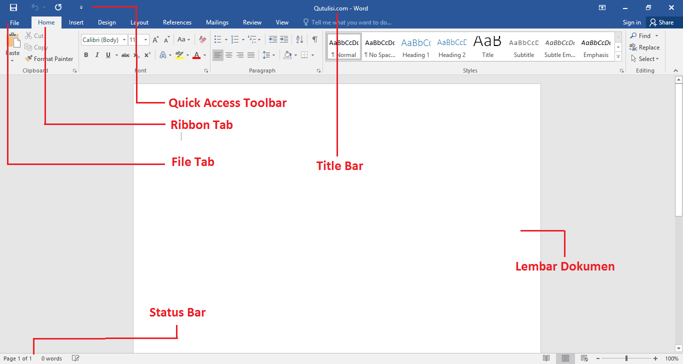 Mengenal Tempilan Microsoft office Word 2016 – Belajar Aplikasi