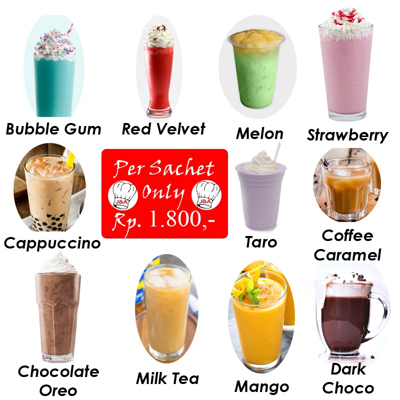 70 RASA) BUBUK MINUMAN BUBUK 25 GR NET ANEKA RASA - BUBBLE DRINK- MILKSHAKE - POP ICE - ICE BLEND | Shopee Indonesia