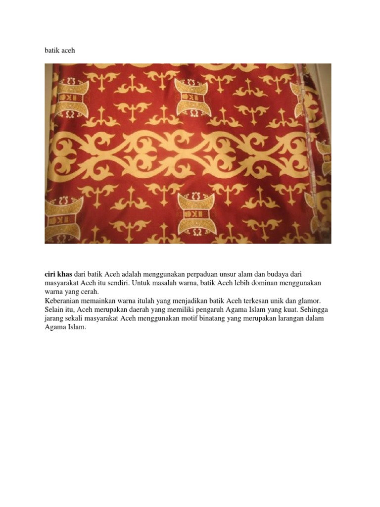 Motif Batik Aceh dan Ciri Khas Motif Batik - Senibudayasia