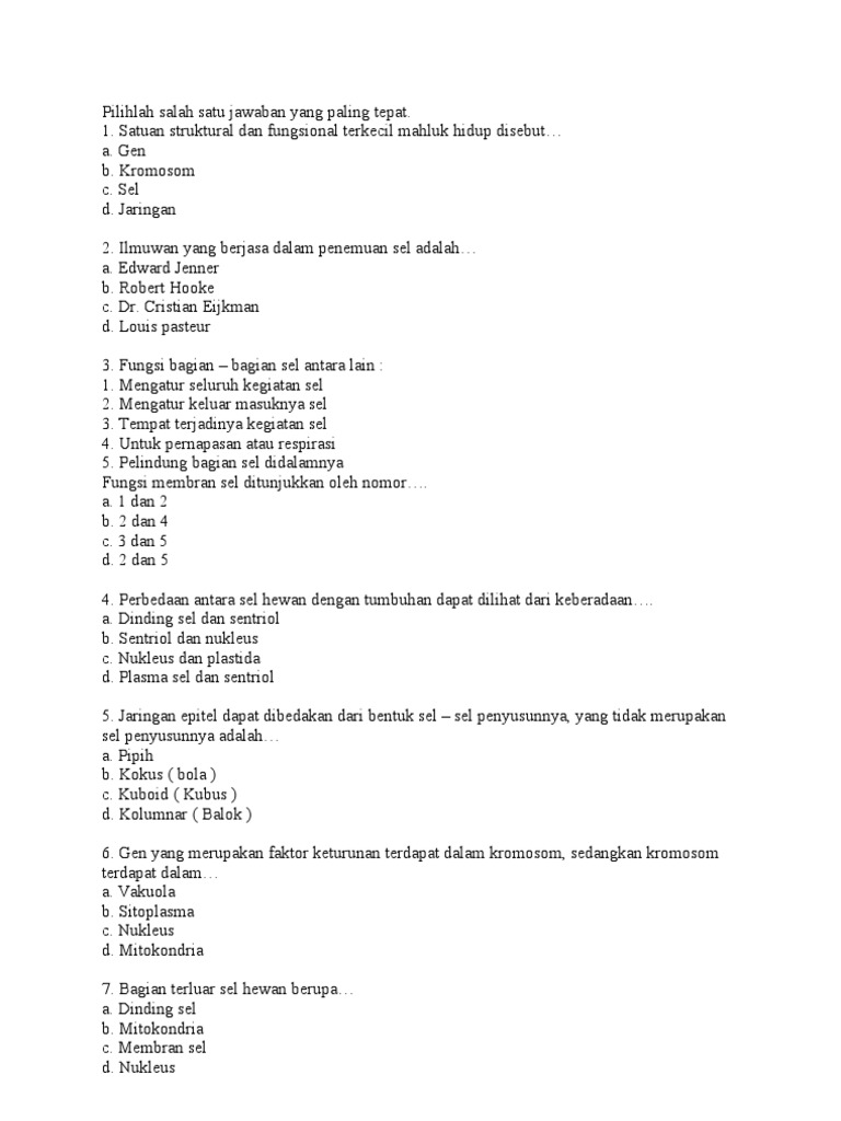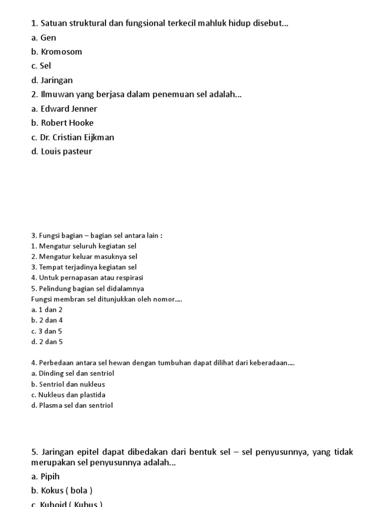 Soal Latihan Sel