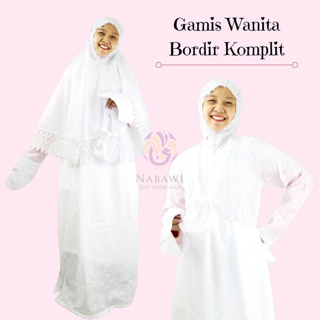 Gamis Ihram Jubah Ihrom Wanita Katun Bordir Lengkap Perlengkapan Haji dan Umroh | Shopee Indonesia