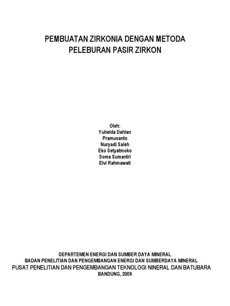 PENGEMBANGAN TEKNOLOGI PENGOLAHAN ZIRKONIA - PDF Free Download