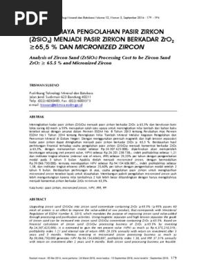 ANALISIS BIAYA PENGOLAHAN PASIR ZIRKON (ZrSiO4) MENJADI PASIR ZIRKON BERKADAR ZrO2 65,5 % DAN MICRONIZED ZIRCON