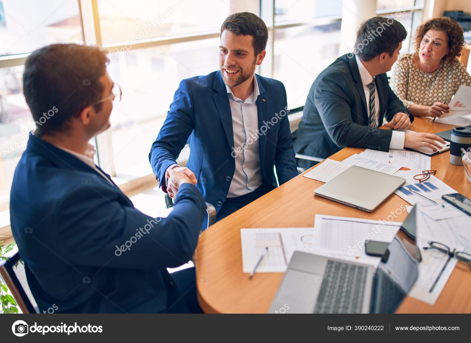 Pertemuan Para Pengacara Bisnis Kantor Hukum Mitra Eksekutif Profesional Bekerja — Stok Foto © Krakenimages.com #390240222