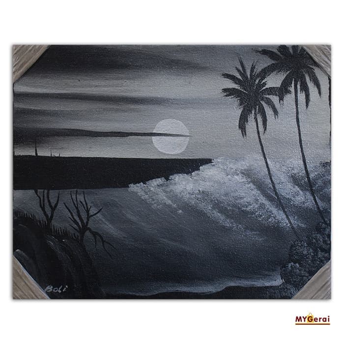 Lukisan Pemandangan Pantai Hitam Putih | Shopee Indonesia
