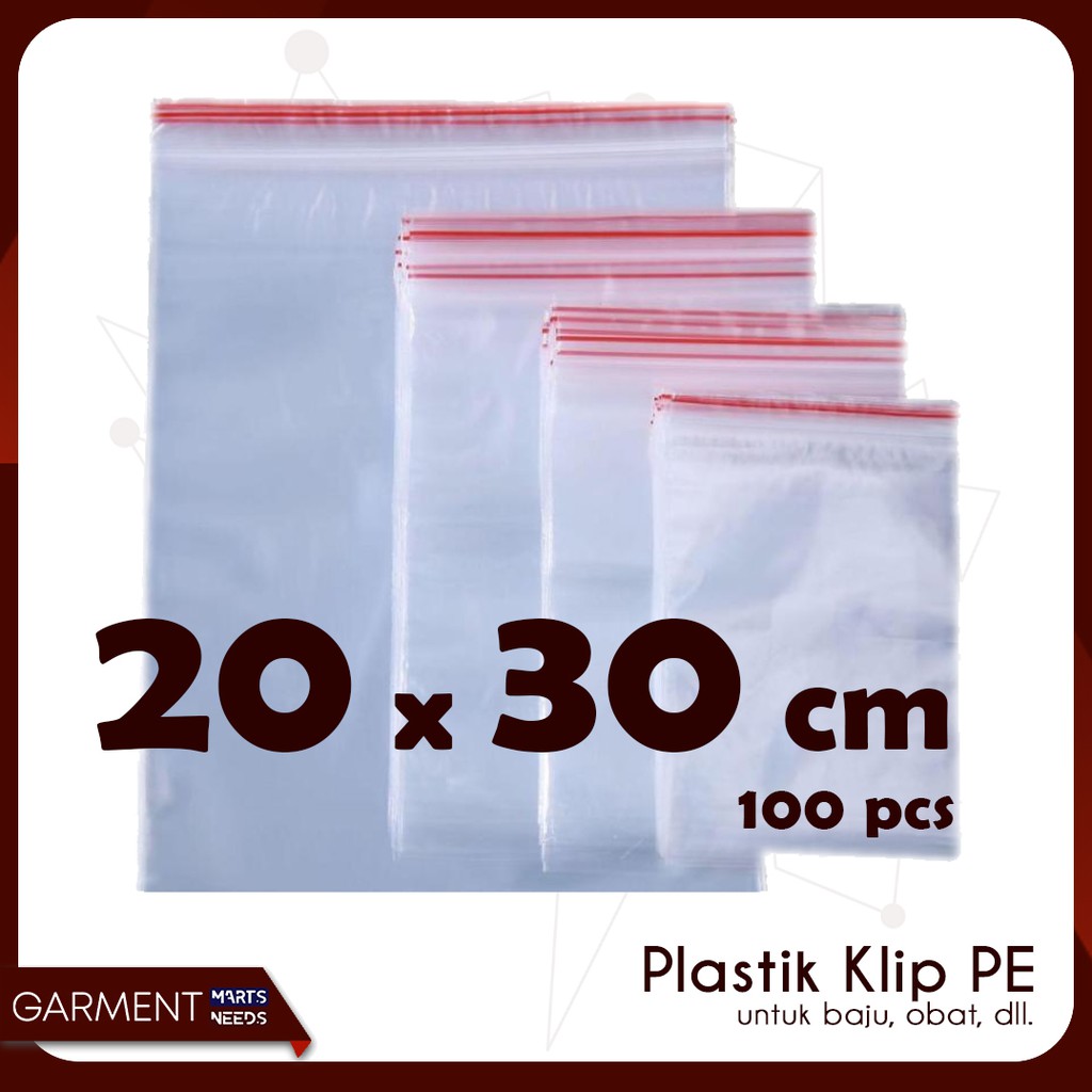Plastik Klip ukuran 20 x 30 cm 100pcs Ziplock Bag Zipper Obat PE Baju | Shopee Indonesia