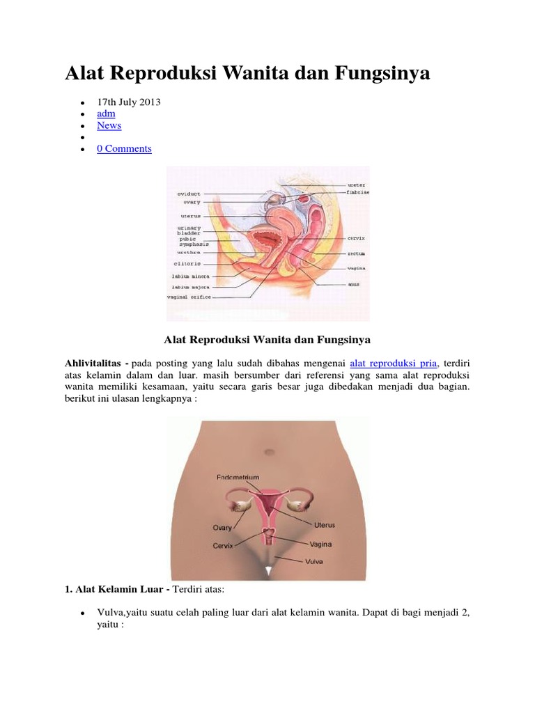 Alat Reproduksi Wanita Luar Dalam dan Fungsinya – Syifa Blog