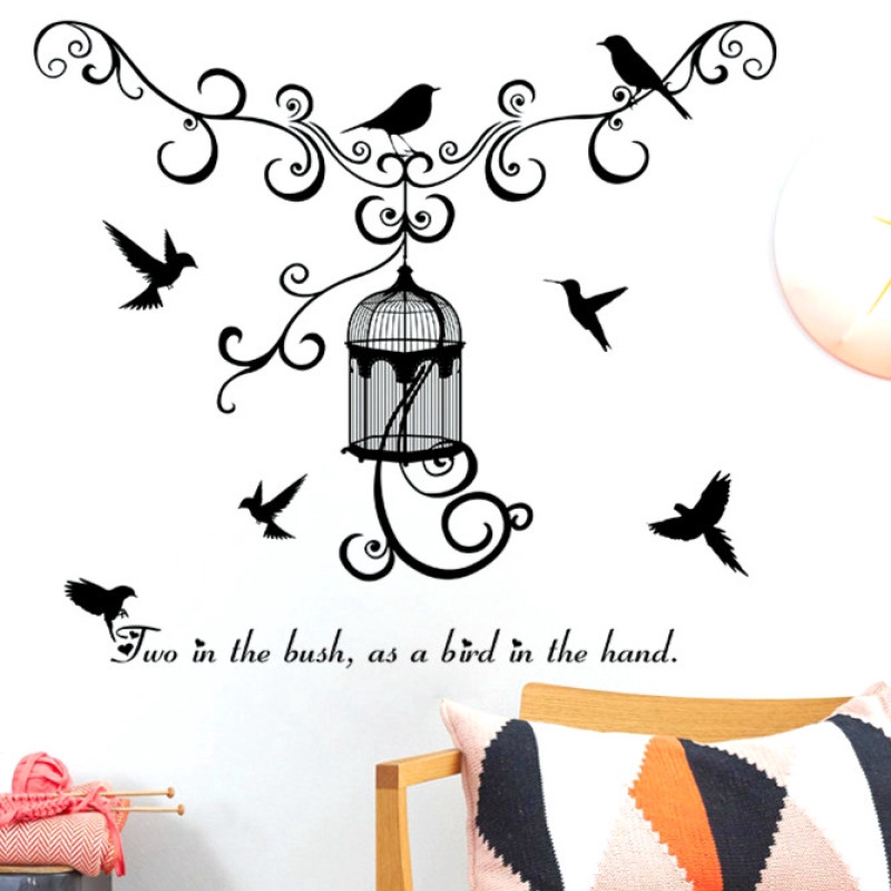 Stiker Dinding dengan Bahan PVC Mudah Dilepas dan Gambar Sangkar Burung | Shopee Indonesia