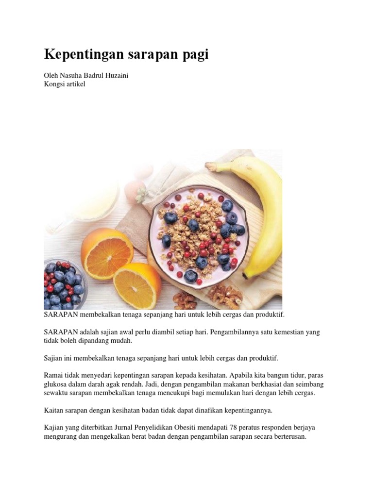 Kepentingan Sarapan Kepada Pelajar | Unit Kesihatan SMK Datuk Panglima Abdullah