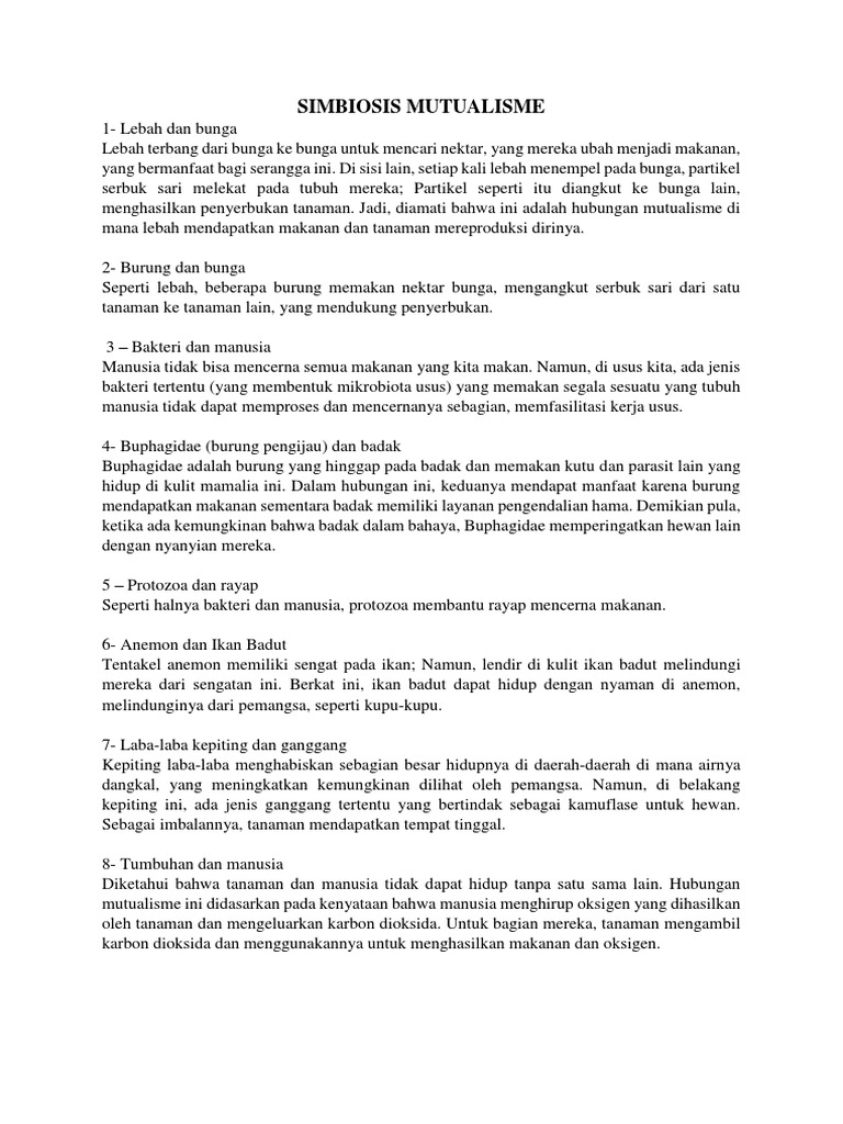 DOC) Contoh Simbiosis Mutualisme | putri retnoningtyas - Academia.edu