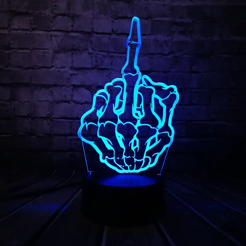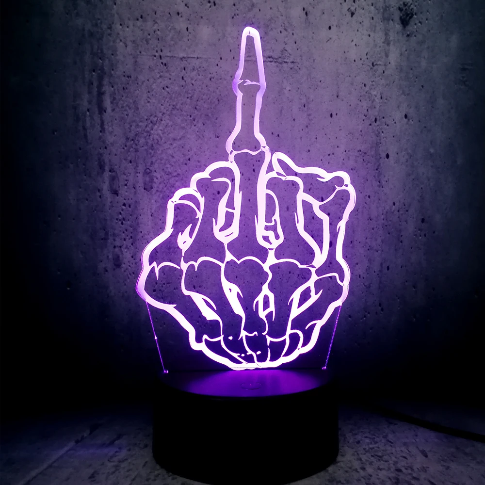 Cool Skull Middle Finger 3D USB LED Lamp Pop Rock Music Boy Room Decor 7 Colors Change Night Light Visual Illusion Effect|LED Night Lights| - AliExpress