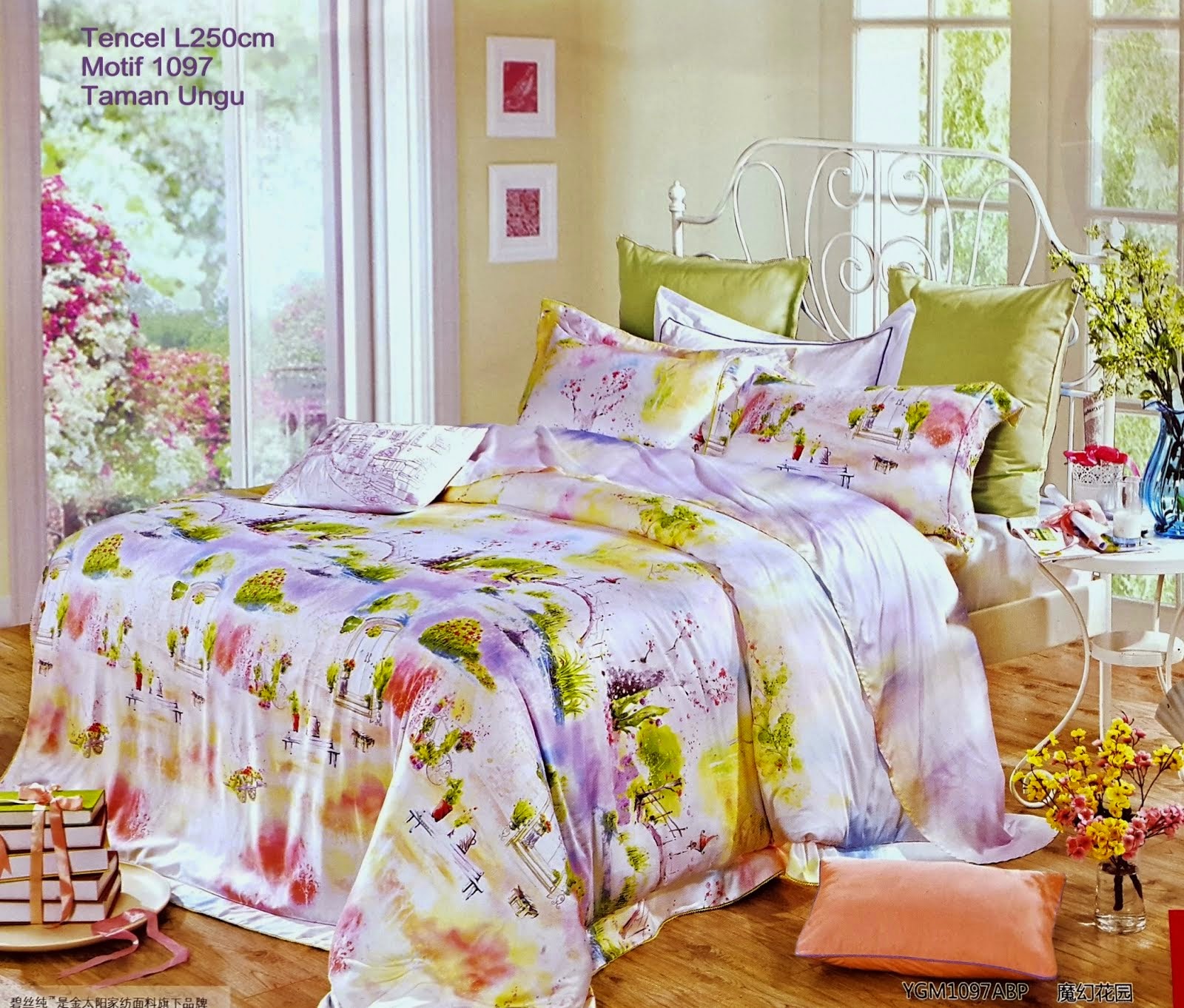 Sprei Jepang dan Tencel Kualitas Terbaik: Sprei Cantik Tencel Motif Taman Ungu