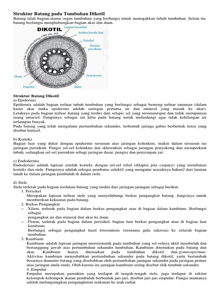 Gambar Struktur Batang Dikotil Dan Fungsinya