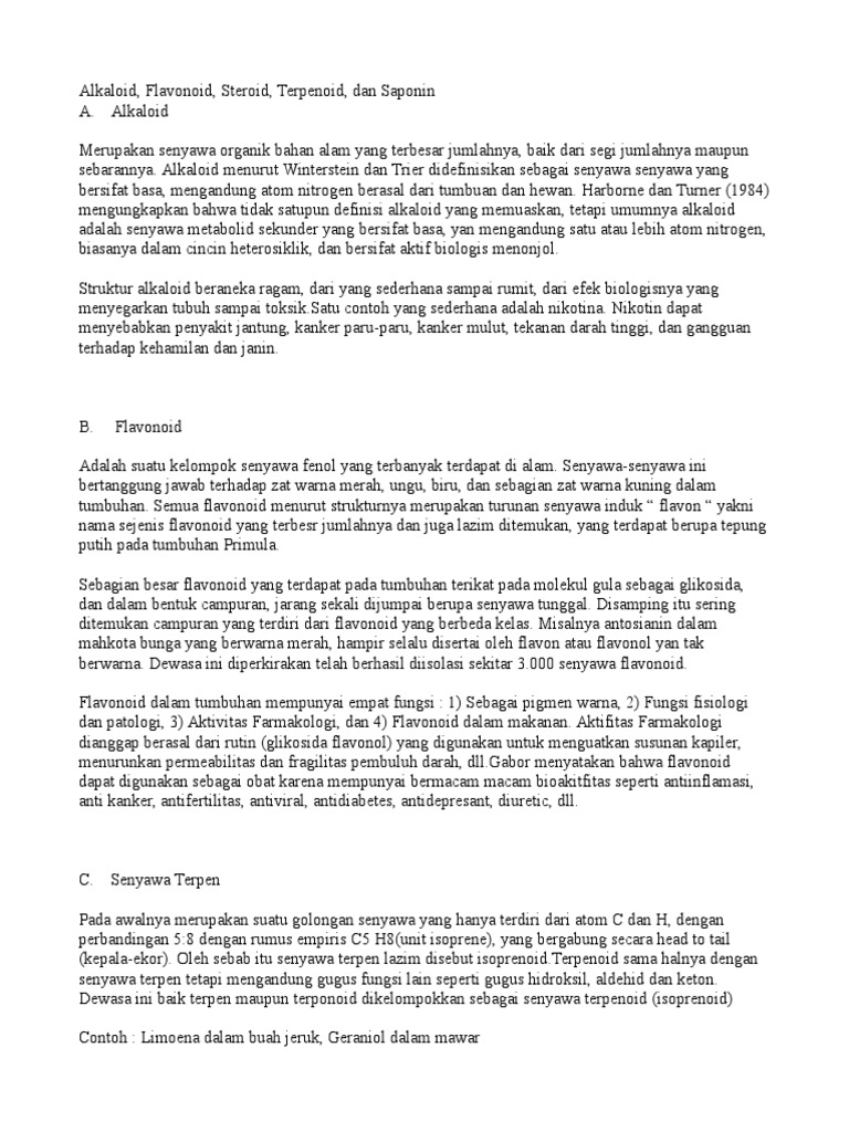 Alkaloid, Flavonoid, Terpenoid, Steroid