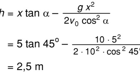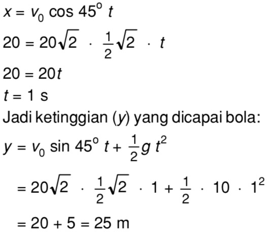 Sebuah bola dilempar dari tanah datar dengan sudut elevasi 45° dan kecepatan awal 202 m/s - Mas Dayat