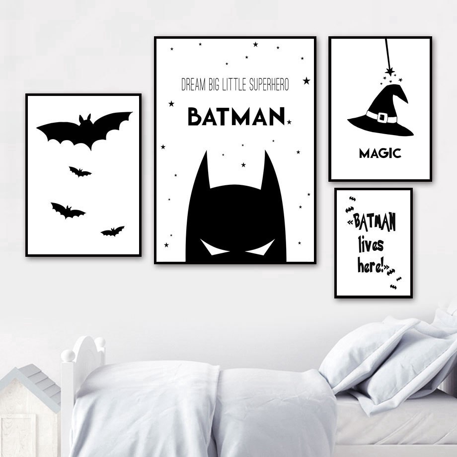 NDITB Kartun Superhero Batman Kutipan Komik Kanvas Seni Poster Hitam Putih Nursery Cetak Lukisan Dinding Gambar untuk Anak anak Kamar Tidur|gambar untuk anak-anak|dinding gambarkanvas seni poster - AliExpress