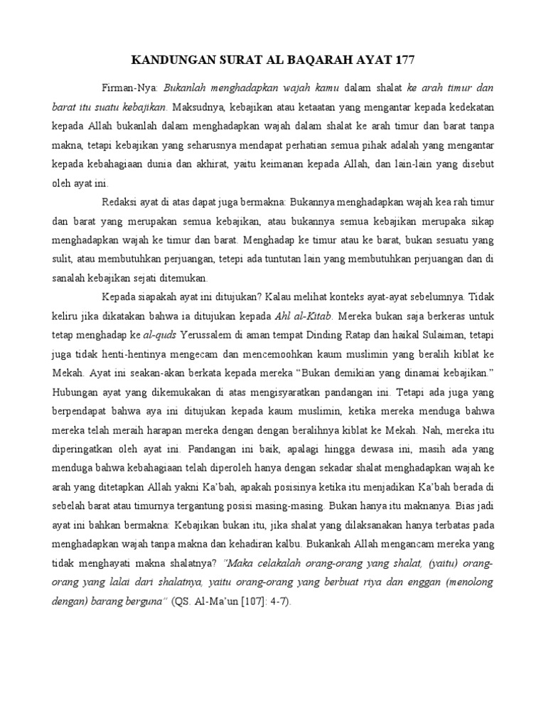 Kandungan Surat Al Baqarah Ayat 177