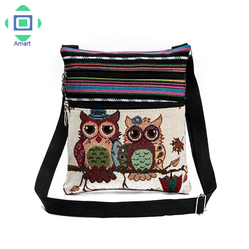 Tas Selempang/Bahu Bahan Kanvas Resleting Ganda Gaya Etnik Gambar Burung Hantu untuk Wanita | Shopee Indonesia