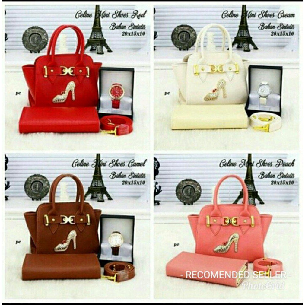 Paket Tas Wanita Dompet Dan Jam Gambar Sepatu | Shopee Indonesia