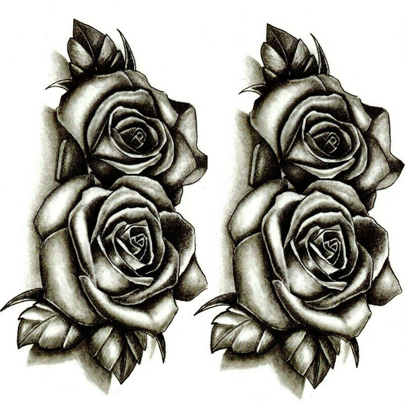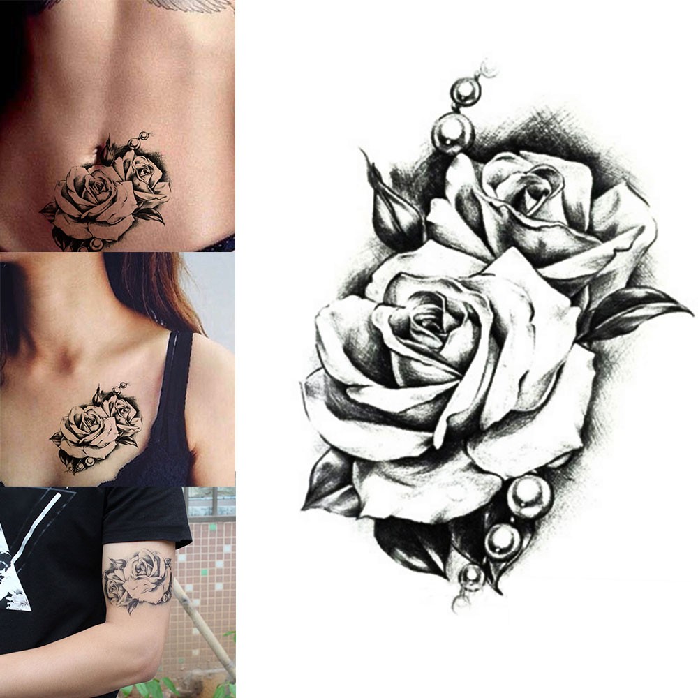 Hitam Mawar 3D Tahan Air Sementara Tato Ilustrasi Stiker Bunga Peony Palsu Tato Seksi Gambar Pensil Daun Wanita Seni Tubuh|seni tubuh|tato seksitahan air sementara tato - AliExpress