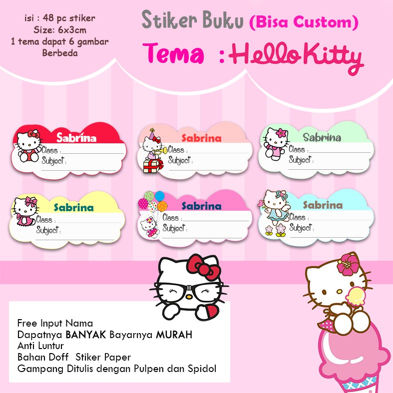 Jual PO3hari Sticker / Stiker Buku Custom Nama Karakter Tema HELLO KITTY - Kota Medan - Unity olshop | Tokopedia