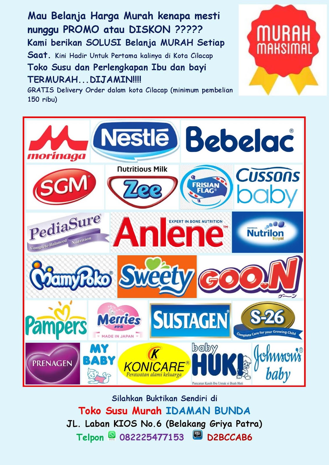 TOKO SUSU MURAH IDAMAN BUNDA: SUSU DAN DIAPERS MURAH CILACAP