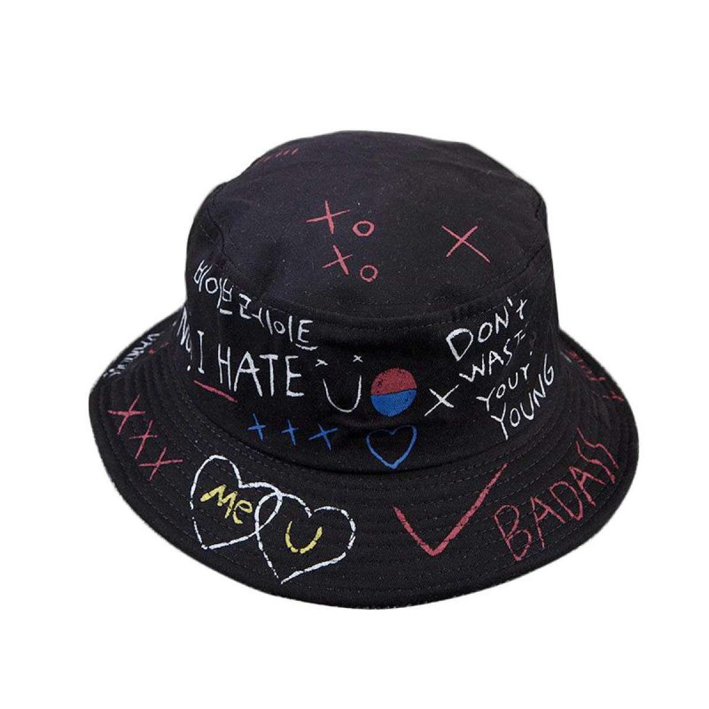 Pria Wanita Topi Nelayan Fashion Huruf Graffiti Topi Bundar | Shopee Indonesia