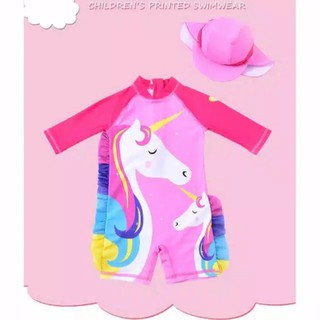 baju renang anak gambar unicorn pink dengan topi untuk usia 2-5 tahun | Shopee Indonesia