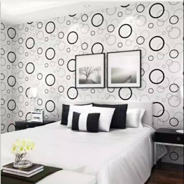 Wallpaper dinding kamar bulat-bulat hitam putih bagus elegant | Shopee Indonesia