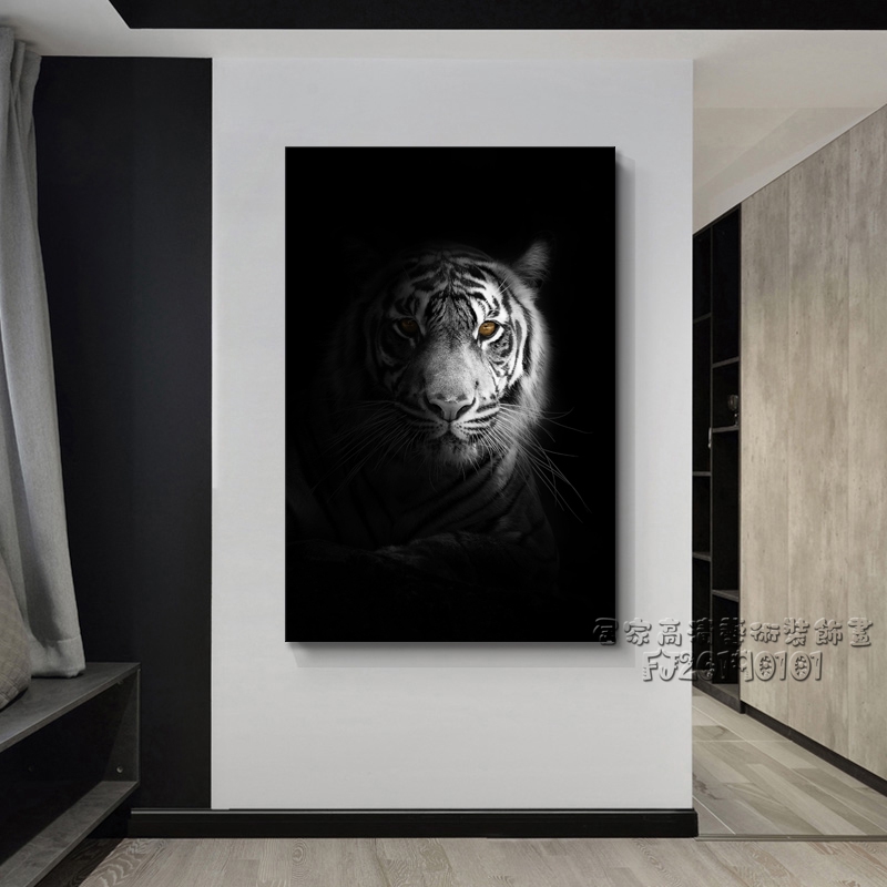 Lukisan Kanvas Model Mural Desain Harimau Nordic Warna Hitam Putih Polos Dengan Bingkai Kayu | Shopee Indonesia