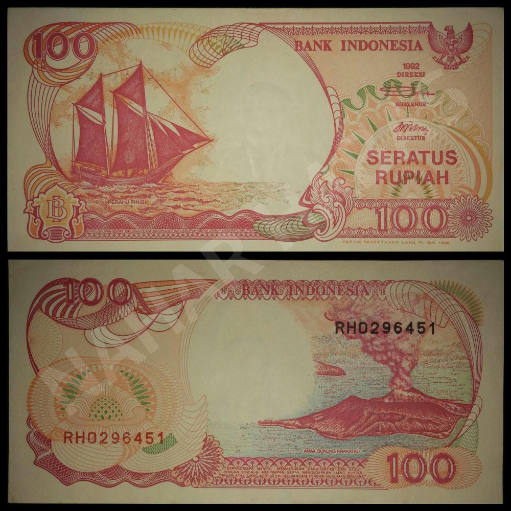 100 Rupiah tahun 1992 perahu pinisi uang kuno kertas bekas | Shopee Indonesia