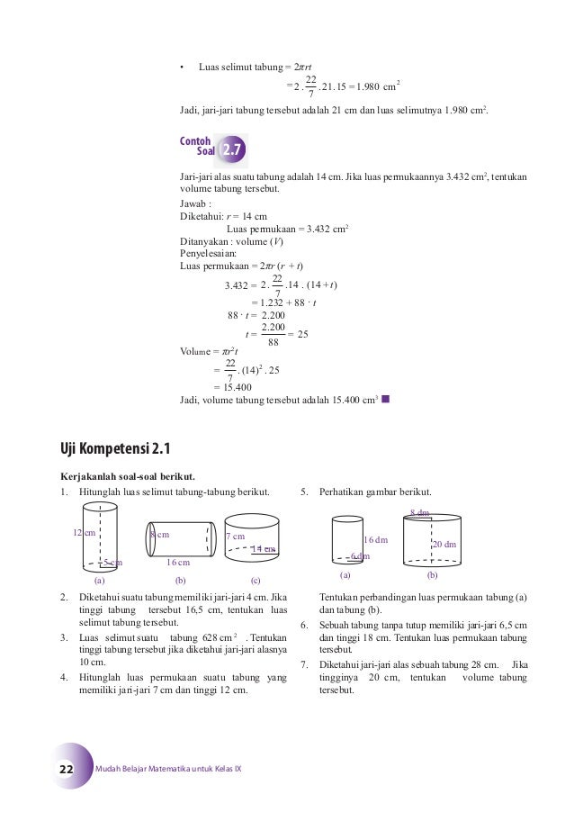 luas permukaan dan volume tabung, teori, bse matematika smp kelas 9 ,k13 lat 5,1 no01abc - YouTube