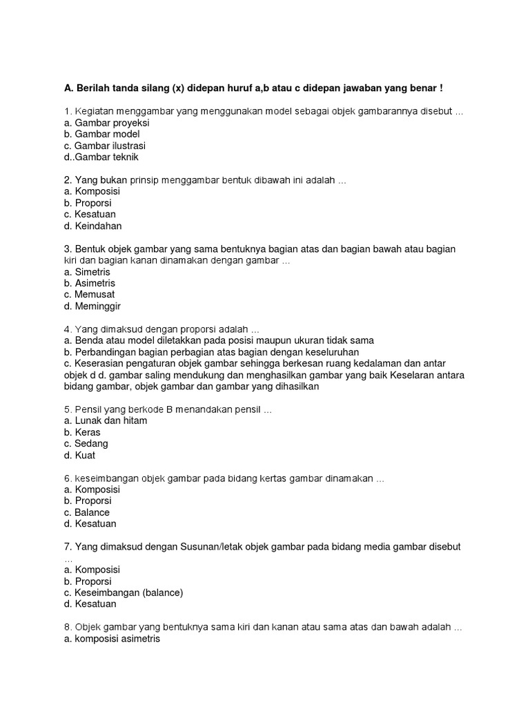 Soal Mapel Seni Budaya Materi Gambar Model dan Gambar Ilustrasi - Mr Mung dot Com