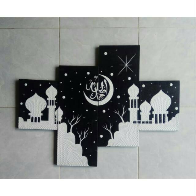 Lukisan panel kaligrafi siluet masjid hitam putih | Shopee Indonesia