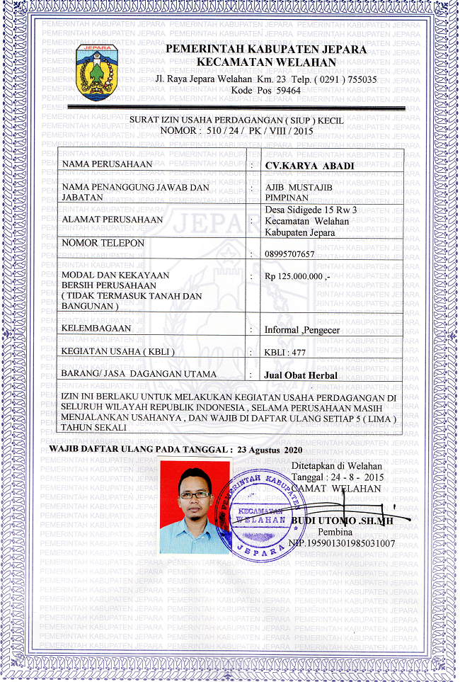 Obat Herbal Plus, CV. Karya Abadi, jl Purwogondo - Guwo, Rt.15/03 Sidigede, Welahan, Jepara, Jepara (2020)
