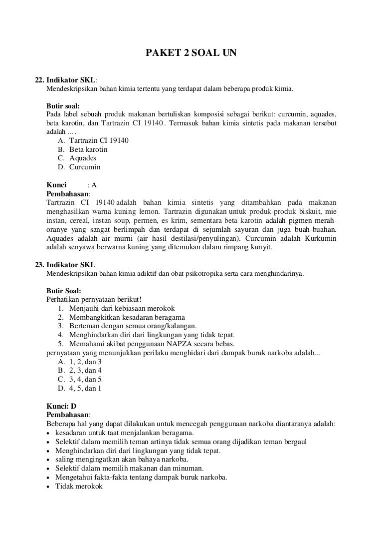 Soal NO : 22 • Indikator SKL :Mendeskripsikan bahan kimia tertentu yang terdapat dalam beberapa produk kimia. - ppt download