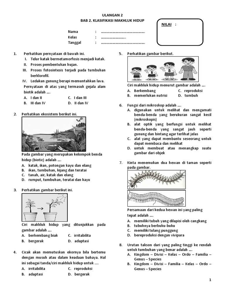 Ulangan 2 Bab 2. Klasifikasi Makhluk Hidup:: Nilai