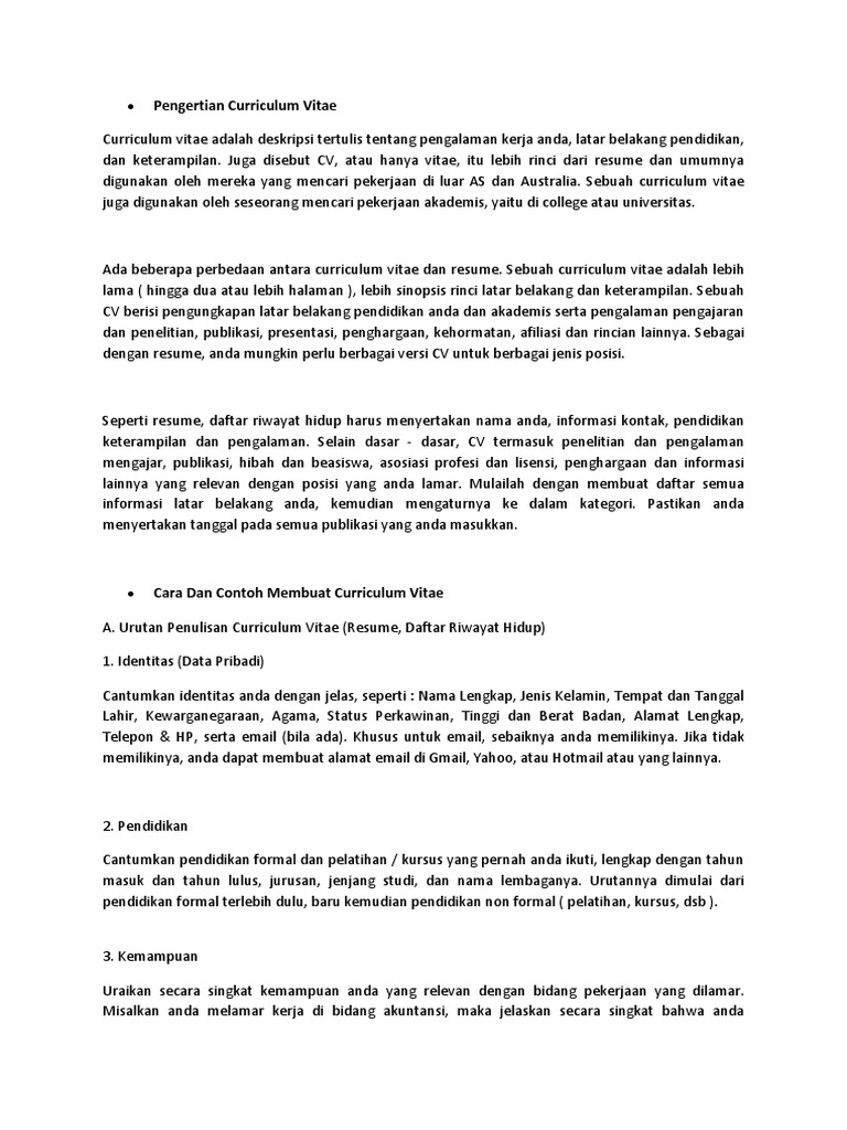 12 Contoh Curriculum Vitae (CV) Lengkap 2020 - Berita Pendidikan Teropong