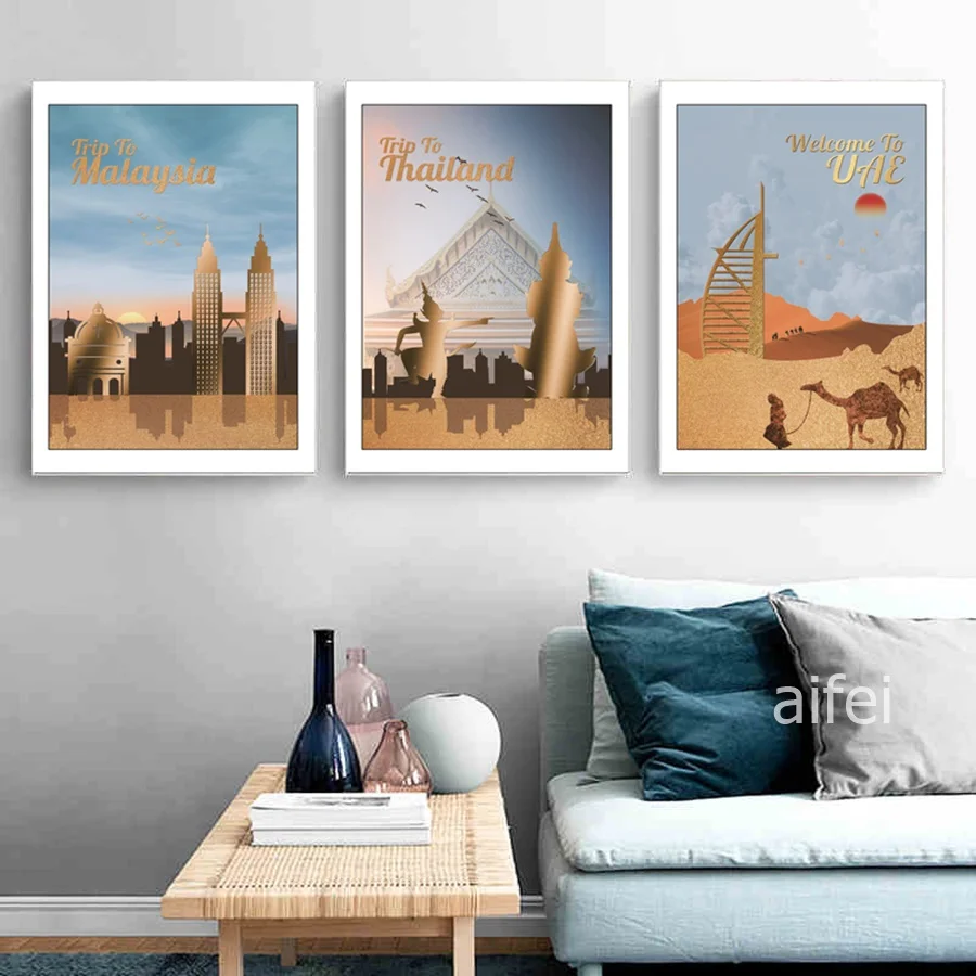 Modern Minimalist Poster Dubai Japanese Torii Malaysia Thailand Architectural Landscape Decorative Painting Canvas Wall Picture| | - AliExpress